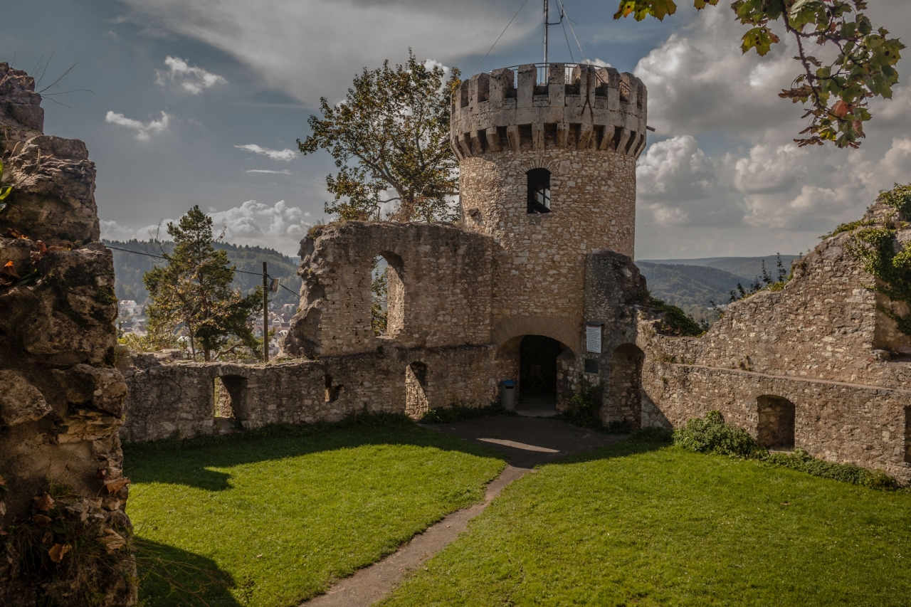 Von Ratshausen geht es hinauf nach Deilingen und den Oberhohenberg, mit 1011m die zweithöchste Erhebung der Alb. Mit einer Hängebrücke an der Ruine und den rekonstruierten Umrissen des Achteck-Turms wird dieser Gipfel zum echten Erlebnis.