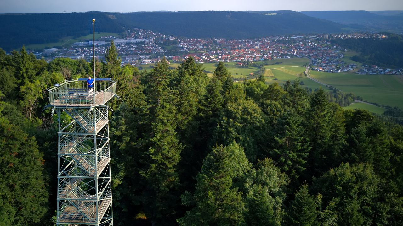 Die Hohe Schwabenalb ist nicht nur eine der schönsten, sondern auch eine der ruhigsten Wanderlandschaften im deutschen Süden. Von Gosheim aus erwartet Sie vom Wanderparkplatz aus zunächst ein steiler Anstieg auf das „Dach der Alb“, den Lemberg, mit 1.015 Metern die höchste Erhebung der Schwäbischen Alb. Der Aufstieg lohnt sich! Den Gipfel ziert ein stählerner Aussichtsturm, der im Jahr 1899 für 12.000 Goldmark vom Schwäbischen Albverein erbaut wurde. In luftiger Höhe bietet sich ein unglaublicher Ausblick. Von hier aus bietet sich an klaren Tagen ein Panorama von der Alpenhauptkammkette bis zum Schwarzwald und dem Neckartal – die weiteste Fernsicht Deutschlands.
