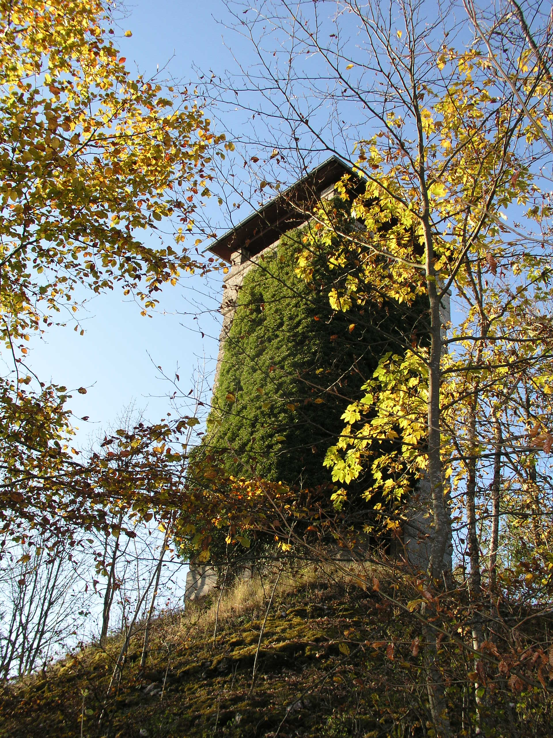 Zunächst Abstecher auf ausgeschildertem Wanderpfad ca. 1 km steil aufwärts zum Aussichtsturm und ehemaligen Pumpspeicher „Gansnest“ (Stichwort: Wasserkraft).